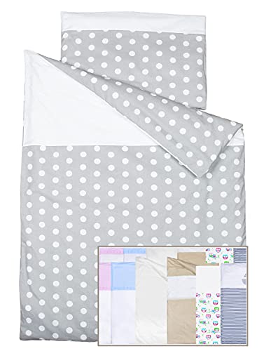 Vizaro - Copripiumino Letto + Federa Cuscino 80-90 x 180-200cm - 100% Cotone - Premium UE - Mis. 150x200cm + 40x75cm - A Pois Bianchi