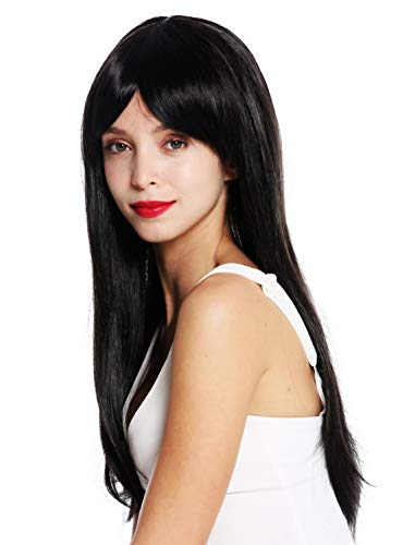 WIG ME UP - VK-30-2 Parrucca donna Lunga Liscia Frangetta lunga Riga Nero