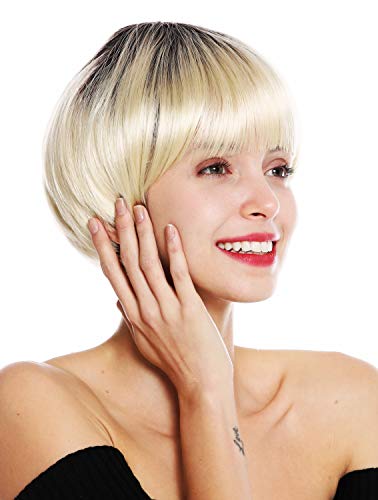 Vistosa e bella parrucca da donna, con un classico taglio pageboy, in uno stile Ombre hair alla moda e stravagante: un mix di castano scuro sulla attaccatura e highlights biondo platino, che arrivano fin sulle punte. Lunghezza: circa 25 cm.