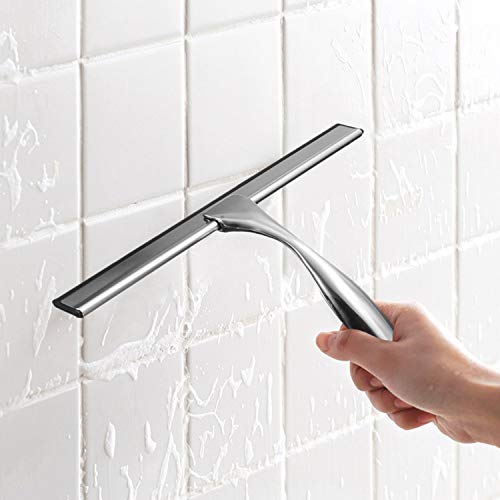 Vkaiy Lavavetri per Cabina Doccia da Ventosa, Asciuga Vetri Doccia in Acciaio Inox, Lavavetri Spazzola Bagno, Tergivetro per Doccia, Spatola Doccia in Acciaio Inox per Pulire Vetri, Piastrelle