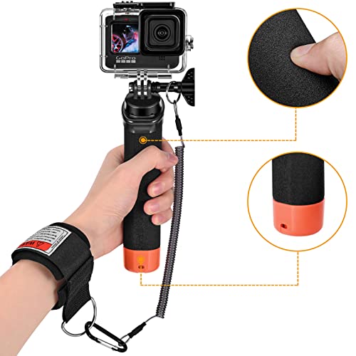 Impugnatura Galleggiante Compatibile con GoPro Hero12, Hero11, Hero10, Hero9, Hero8, Hero7, Hero6, Hero5, Hero4, Session, Hero3+, Hero3, Hero2, Hero1, Hero (2018), Fusion, Max, DJI, AKASO, Apexcam, Exprotrek, WOLFANG e la maggior parte delle videocamere sportive e subacquee.