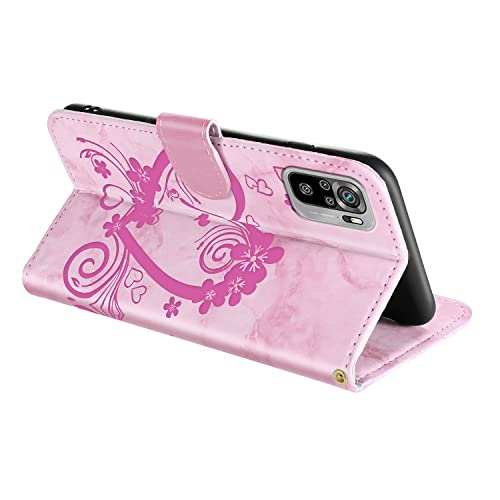 Vkooer Cover per Xiaomi Redmi Note 10 4G Libro Custodia Premium PU Pelle Flip Portafoglio Case con Magnetica Chiusa Porta Carte per Xiaomi Redmi Note 10 4G, Rosa