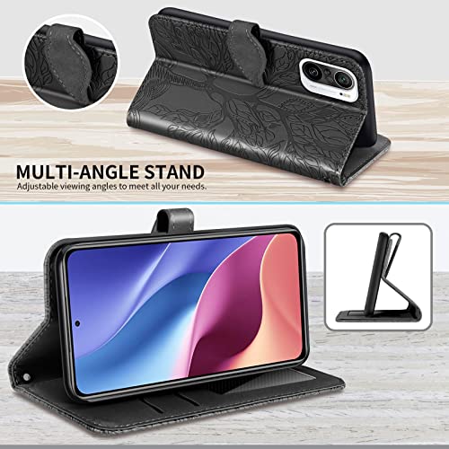 Vkooer Custodia Xiaomi Poco F3 / Mi 11i Cover PU Pelle Portafoglio Flip Case con Tasca Kickstand Magnetica Guscio Protettivo per Xiaomi Poco F3 / Mi 11i, Albero della Vita Nero