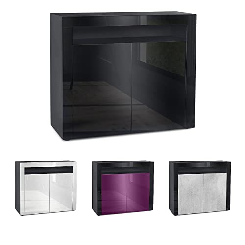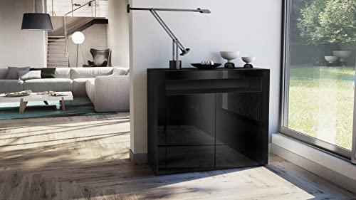 Vladon Mobiletto City, credenza con 2 ante e 1 scomparto aperto, nero opaco/nero lucido/nero lucido (108 x 92 x 40 cm)