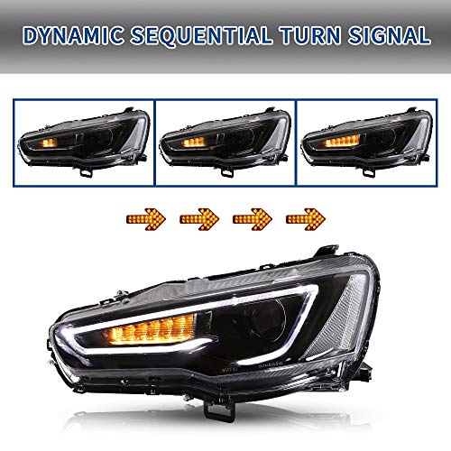 VLAND LED DRL fari anteriori Per Lancer EVO X 2008 2009 2010 2011 2012 2013 2014 2015 2016 2017 2018 Faro,con indicatore dinamico,edizione Black,solo per guida a sinistra (1 set completo)