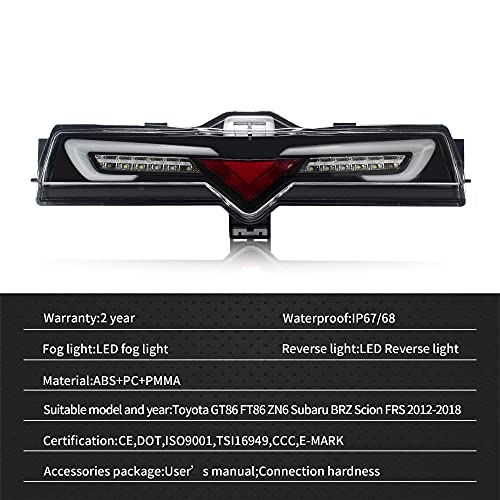 VLAND LED Fanale Posteriore per 2012-2018 GT86 FT86 Coupe 2012-2018 BRZ ZN6 FRS Fendinebbia Fendinebbia Posteriori Paraurti Posteriore Luce (Lenti trasparenti)
