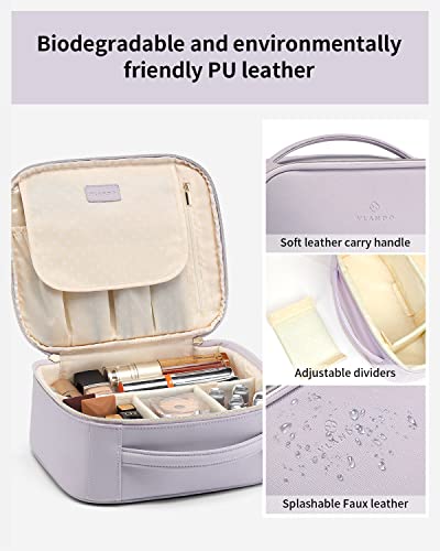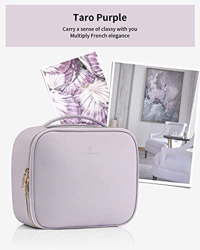 Vlando Make Up Bag in pelle, Impermeabile Borsa Trucchi Borso con Scomparto Rimovibile per Cosmetic e vano spazzole Utilizzato, Perfetto per viaggio/all'aperto (viola)