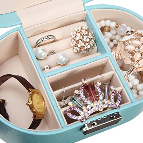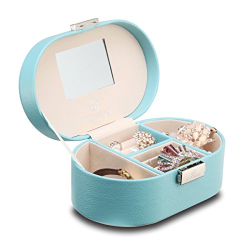 Vlando Small Faux Leather Travel box display Storage Case organizzatore per anelli orecchini collana gioielli con specchio, Pelle, Blue, Blu