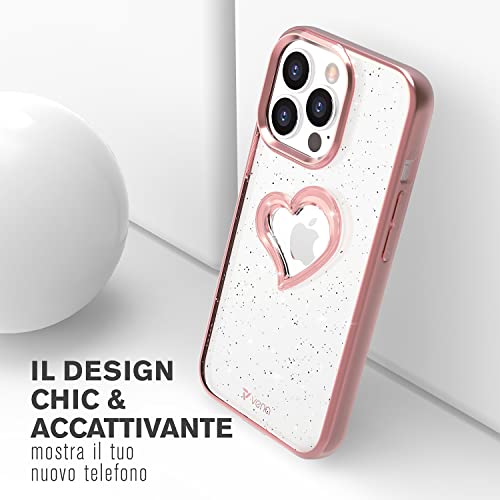 VENA vLove Cover Glitter Trasparente Compatibile Con Apple iPhone 13 Pro (6.1"-Inch), (Heart Shape, Magsafe Compatibile) Bling Custodia Case Protettiva - Oro Rosa
