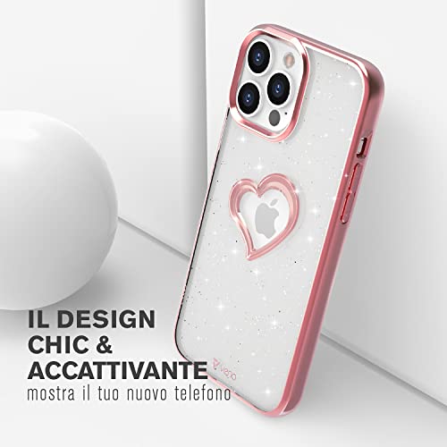 VENA vLove Cover Glitter Trasparente Compatibile Con Apple iPhone 13 Pro Max (6.7"-inch), (Heart Shape, Magsafe Compatibile) Bling Custodia Case Protettiva - Oro Rosa