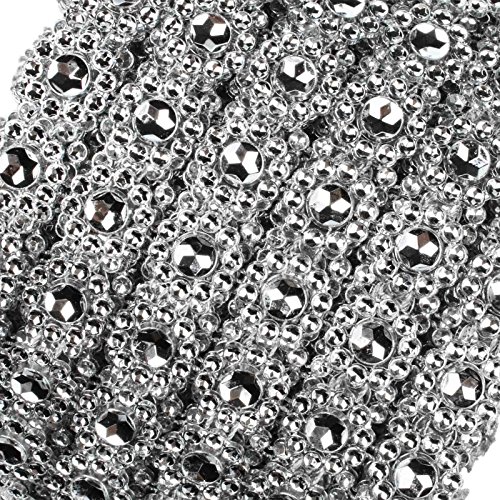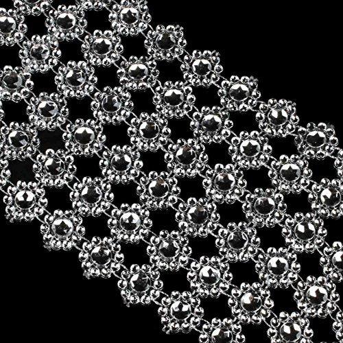VLoveLife - nastro per fai da te da 9,5 cm di larghezza con 6 file di strass argentati a forma di margherite per decorazioni da matrimonio e torte, 0,9 m, Silver, 10 Yards