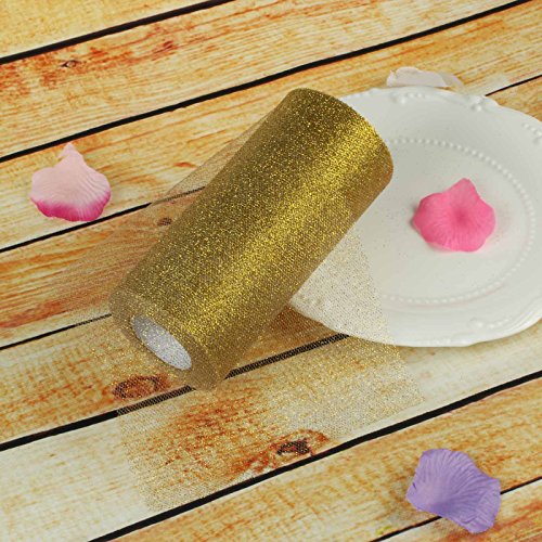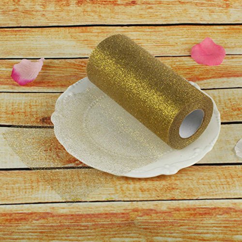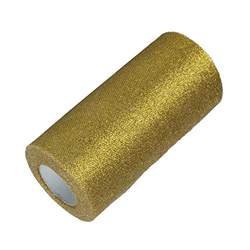 Vlovelife 15 cm x 22 m Rotolo di tessuto di tulle con glitter, per Gonne Tutù, Runner da tavolo, Fusciacche per Sedie, Fiocchi, Fai da te, Decorazioni artistiche per feste e matrimoni, Tulle, Gold, 15cm x 22m