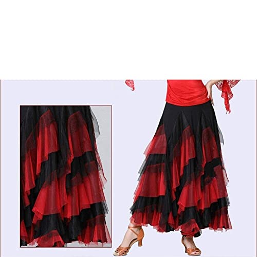 VMBBBC Donne Ballroom Modern Latin Dance Gonna Lunga Di Flamenco Concorso Di Tango Gonne Di Danza Moderna (Color: Rosso, Taglia unica: One Size)