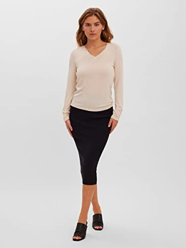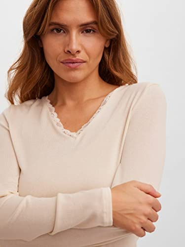 Vero Moda Vmbirthe LS Top in Pizzo con Scollo A V Jrs Ga BF Maniche Lunghe, Betulla, XS Donna