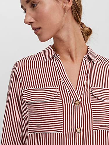 Vero Moda VMBUMPY L/S Shirt Noos Camicia da Donna, Bianco Neve/Strisce: Olio di Peperoncino, M