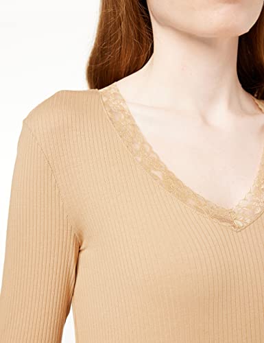 Vero Moda VMHELSINKI LS Deep V-Neck Top Jrs Maglietta a Maniche Lunghe, Marrone, M Donna