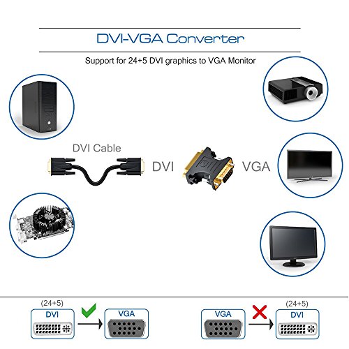 VMOJO - Adattatore DVI a VGA DVI-I 24+5 femmina a VGA HD15 maschio, convertitore digitale a analogico per monitor, PC, proiettore, scheda grafica