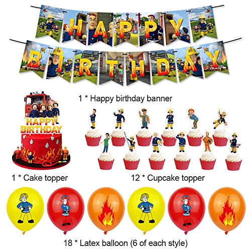 VMOTA Palloncini Pompiere 32 PCS Decorazioni Feste Compleanno Firemen Sam Feste di Compleanno Sam Il Pompiere Cake Topper Striscione di Compleanno Palloncini per Bambini