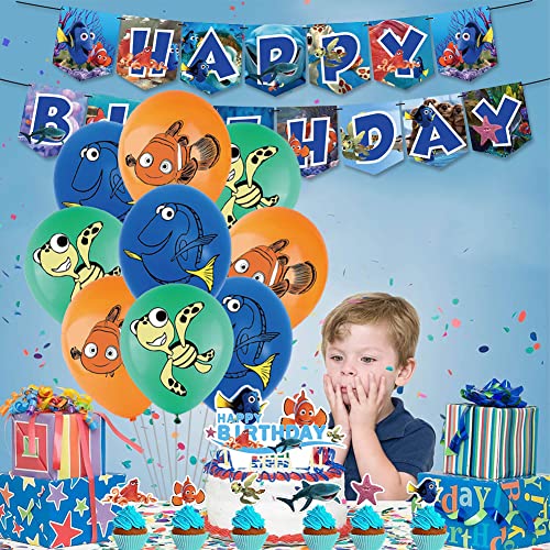 VMOTA 32 PCS Palloncino Finding Nemo Decorazioni Feste di Compleanno alla Ricerca di Nemo Palloncini Striscione di Compleanno Animali Marini Cake Topper Baby Shower Decorazioni