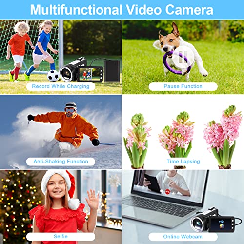 Vmotal Videocamera Videocamera GDV8162 Videocamera digitale ricaricabile FHD 1080P 24MP Schermo ruotabile LCD 270°, videocamera per Bambini/Adolescenti/Studenti/Principianti/Anziani
