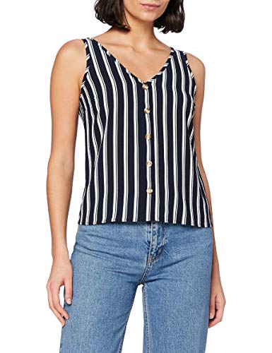 Vero Moda VMSASHA SL Button Top Noos Maglietta, Navy Blazer/Strisce: Bianco Cocco, S Donna