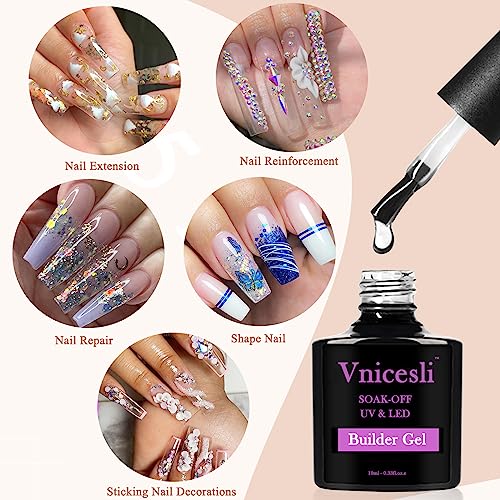 Vnicesli Builder Gel Unghie e Base Coat 5 in 1 Smalto Semipermente in Gel Bianco Latte Trasparente UV LED Estensione delle Unghie Quick Gel per Unghie Ricostruzione Smalto per Unghie Gel Polish 10ml