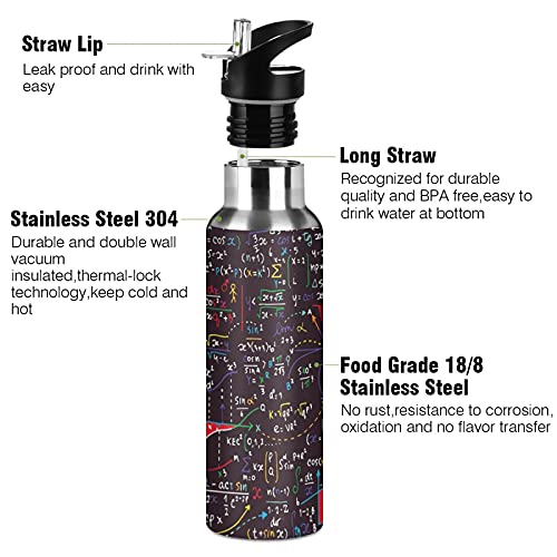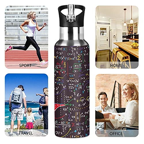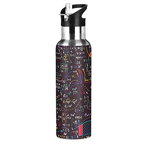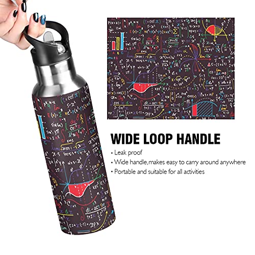 Vnurnrn Arte Matematica Formule Matematica Fisica Bottiglia Acqua Acciaio Inox, Isolato Borraccia Termica Senza BPA 600ML per Bevande Calde e Fredde per Bambini Sport Ciclismo Scuola