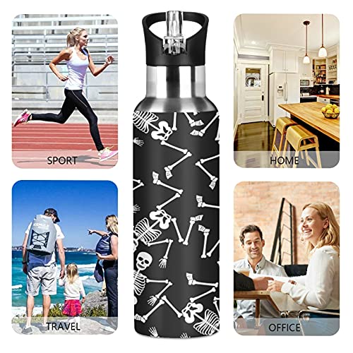 Vnurnrn Scheletro Danzante Regalo Teschio Di Zucchero Bottiglia Acqua Acciaio Inox, Isolato Borraccia Termica Senza BPA 600ML per Bevande Calde e Fredde per Bambini Sport Ciclismo Scuola
