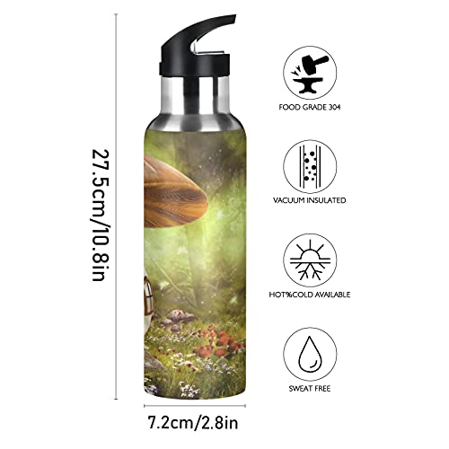 Vnurnrn Simpatica Fiaba Di Funghi Artistici Bottiglia Acqua Acciaio Inox, Isolato Borraccia Termica Senza BPA 600ML per Bevande Calde e Fredde per Bambini Sport Ciclismo Scuola