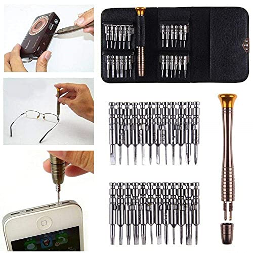 ▲ 25 in 1 Set Cacciaviti Kit Riparazione, set completo di 24 teste in serie, specifiche complete, può essere adattato per lavorare in molti campi diversi. Comprendono 24 utensili + 1 manico presa.