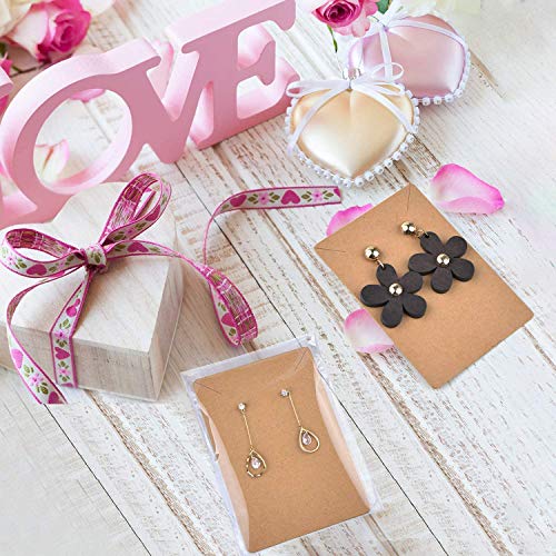 Voarge 100 cartoncini per gioielli, con 100 sacchetti autoadesivi, per orecchini, carta kraft per appendere i gioielli, per mostrare i gioielli in negozio