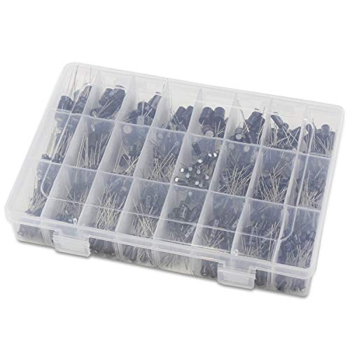 Voarge - Condensatore elettrolitico 24 valori, kit condensatore elettrolitico, 0,1uF-1000uF, set assortito nero con scatola di plastica trasparente
