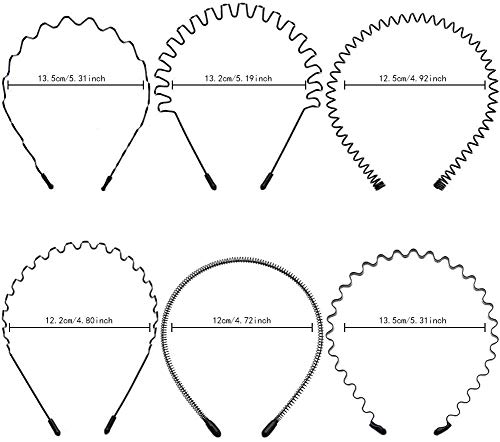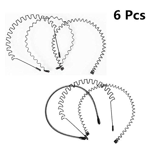 Voarge 6 fasce per capelli in metallo nero Spring Wave, multistile, unisex, flessibile, accessorio nero per uomini e donne