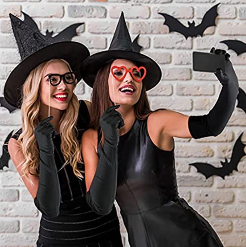 Voarge Guanti del 1920 per le donne Guanti lunghi in raso al gomito, Guanti lunghi classici in raso di lunghezza al gomito 22"Taglia adulta, Nero, Taglia unica