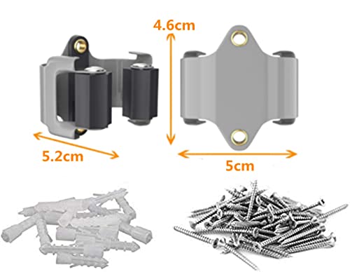 5 ganci da mop, realizzati in materiali di alta qualità, I rulli in gomma resistente all'abrasione e buffer garantisce una lunga durata, Il set contiene tasselli con viti ad espansione, che sono adatte per scope, pala, ecc.