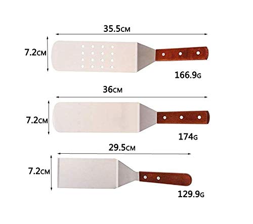 Materiale di alta qualità: acciaio inossidabile di alta qualità, robusto e durevole. Manici in legno lisci con chiodatura sicura e realizzati per una presa sicura e confortevole. Le teste della paletta sono realizzate in acciaio inossidabile non reattivo e durevole per uso alimentare.