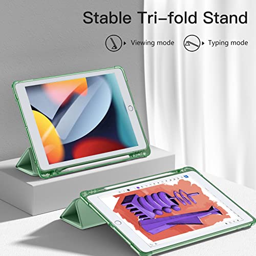Vobafe Cover Compatibile con iPad 9a Generazione 2021/8a Generazione 2020/7a Generazione 2019, Custodia Posteriore Smerigliata Traslucida per iPad 10.2 Pollici con Portamatite (Verde-PC)