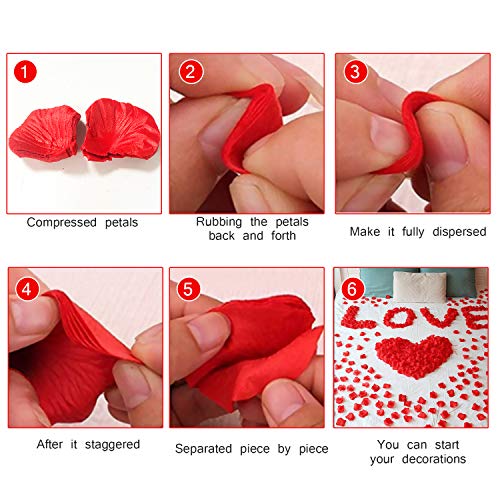 ❀ 1000 pezzi: la confezione include 1000 pezzi di petali, ed è sufficiente per poter mettere insieme i petali di rose rosse e fai da te e decorare il tavolo, la stanza o un altro posto. Crea un'atmosfera romantica in alcuni eventi speciali per il tuo partner.