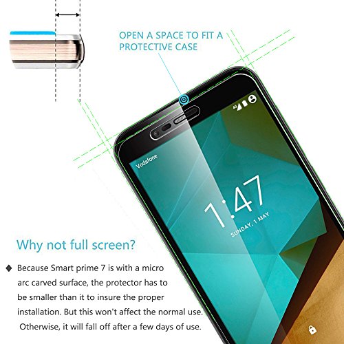 NOTA: A causa del bordo rotondo di Vodafone Smart prime 7, la Protezione dello Schermo NON Coprire l'intero Schermo, ma solo la zona pianeggiante. Retail package include: 2-Pack temperato protezione per lo schermo in vetro, panno per la pulizia, l'istruzione. 12 mesi di garanzia, La sostituzione senza problemi o la garanzia di rimborso per garantire la massima protezione.