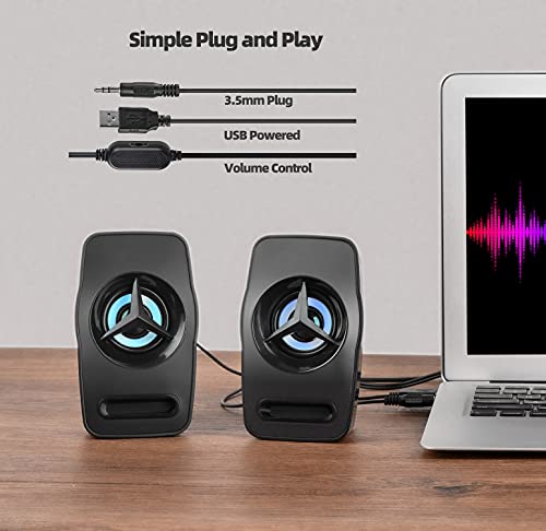 VOEMPHI 2.0 Altoparlanti PC per Computer Laptop, 6W, Alimentato da USB Controllo del Volume Suono Stereo con Luce LED, Nero