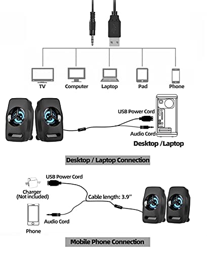 ✔ USB Powered, Jack da 3,5 mm funziona con computer, laptop, tablet, telefono.