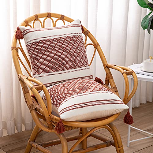 VOFANK Set di 2 federe per cuscino in cotone boho con nappa, decorative, per divano, camera da letto, soggiorno, auto (rosso, 45 x 45 cm)