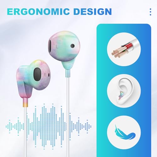 Vofolen Cuffie iPhone con filo Auricolari con filo Controllo del Volume e Isolamento del Rumore Earphones filocablato Cuffie in ear Hi-Fi Stereo compatibile con iPhone 14/13/12/11/8/8 Pro/7/XR Rainbow