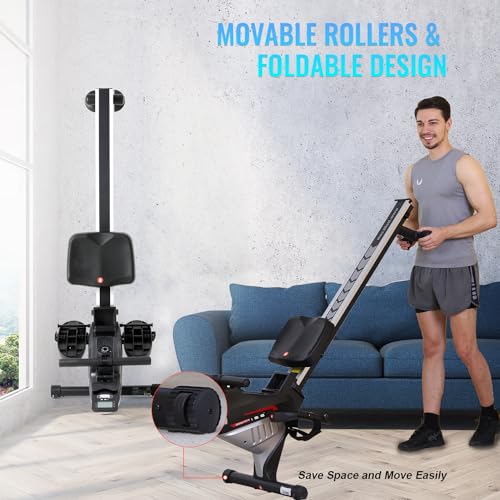 ISE Vogatori per Casa Pieghevole, Sistema Magnetico, 8 Livelli di Resistenza, Guida di Scorrimento in Alluminio, Salvaspazio, per Fitness Allenamento, SY-1750