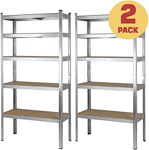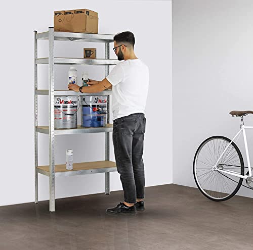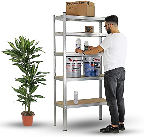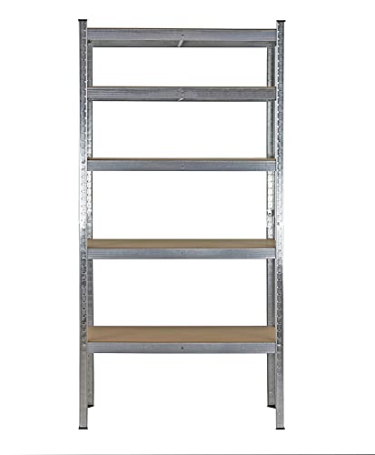 MBI - voglia di fare - Scaffale metallo garage - 180x90x40 Cm - scaffale 5 ripiani per garage profilo in ferro robusto e resistente scaffale legno scaffale metallico garage (2, Galvanizzato)