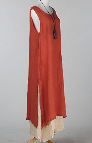 Vogstle Donna Doppio Strato con Bordo Irregolare Cotone Lino Vestito a Manica Lunga/Corta Stile-2 Arancione S