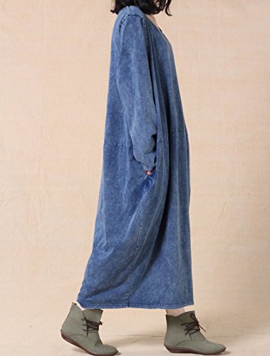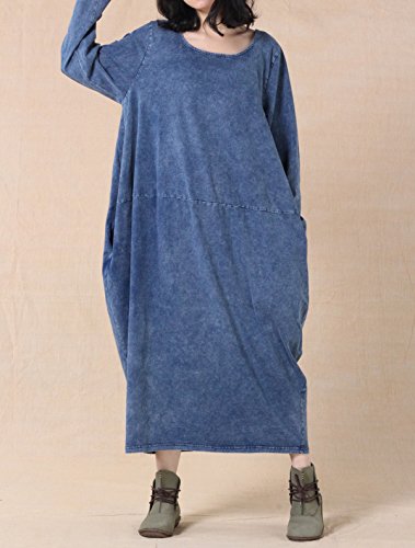 Vogstyle Donna Abito di Denim a Manica Lunga/Corta Stile-1 Blu L