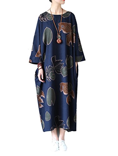 Vogstyle Donna Caftano Retro Con Stampato Blu