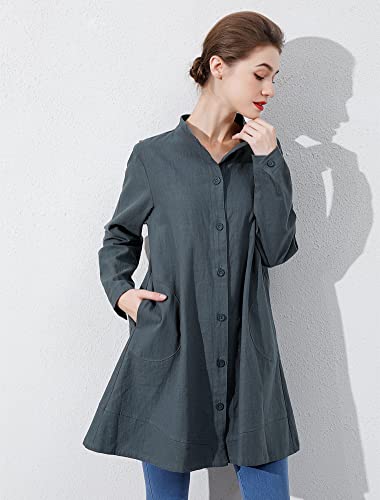 Vogstyle Donna Camicia Cardigan Lunga Casuale Verde Scuro M