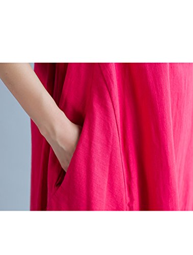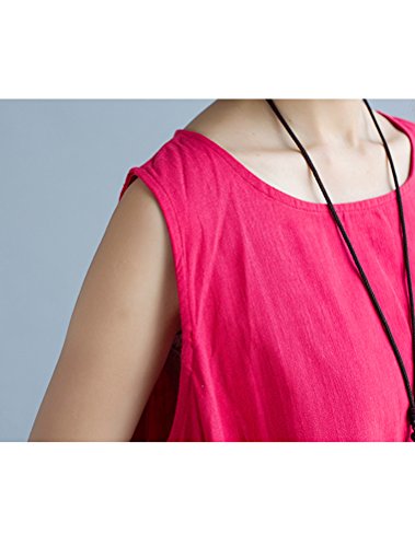 Vogstyle Donna Estate Vestito Rotondo Collare Senza Maniche Sciolto Abiti Rosso XL